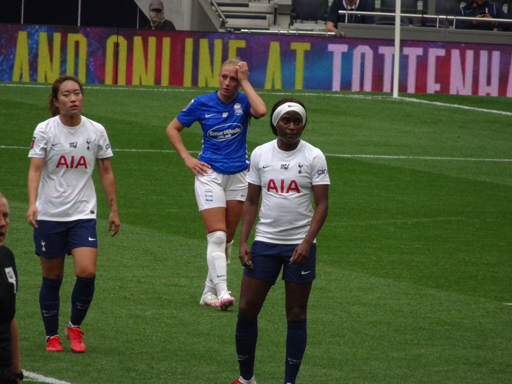 Tottenham’s first clear chance of the second half came in the 62nd minute when Birmingham was caught short playing out the back with an interception by Josie Green, the ball fell to Tang who shot from the edge of the box but her effort went just wide of Ramsey’s right-hand post. Less than a minute later Tang came close again when Ramsey’s goal kick reached the halfway line and was strongly headed by Clemaron to Tang who shot again from the edge of the box this time her shot going just wide of Ramsey’s left-hand post.
