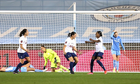 City came straight back at Tottenham looking for the equaliser with Shaw one on one with Spencer but the Tottenham stopper stood strong to deny her Jamaican team mate. The 4th official indicated a minimum of 7 minutes injury time, City threw everything at Tottenham and in the 93rd minute after Zadorksy left the pitch injured, White had her first clear chances of the game but was unable to connect and turn in the cross for the equaliser. Tottenham’s defence held strong as our Lilywhites closed the final minutes by just getting rid of the ball upfield as Graham held up play deep in the City half before the game came to an end and Tottenham recorded their first ever win against top opposition and ending City’s 33 unbeaten run.