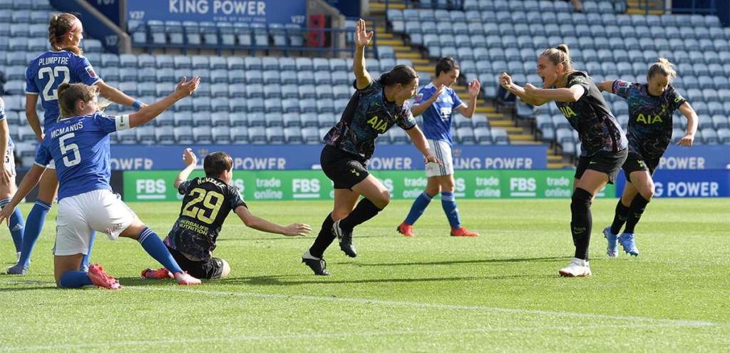 Tottenham missed a great opportunity to punish Leicester in the 77th minute when a Graham corner found Williams unmarked but her header from point black range was straight at Levell who denied Tottenham and Williams a second. Leicester almost snatched an equaliser in the 84th minute when a rare Leicester attack led to a corner, Tottenham’s defence was caught napping as the corner was met by Flint unmarked but her header went just wide of Spencer’s goal. Tottenham finally got their reward in the 87th minute when Tottenham countered with a move started by Clemaron who found Ayane with a pass, Ayane found Williams down the right who centred into the Leicester box finding substitute Addison who slotted past Levelle to give Tottenham a deserved 2nd goal.