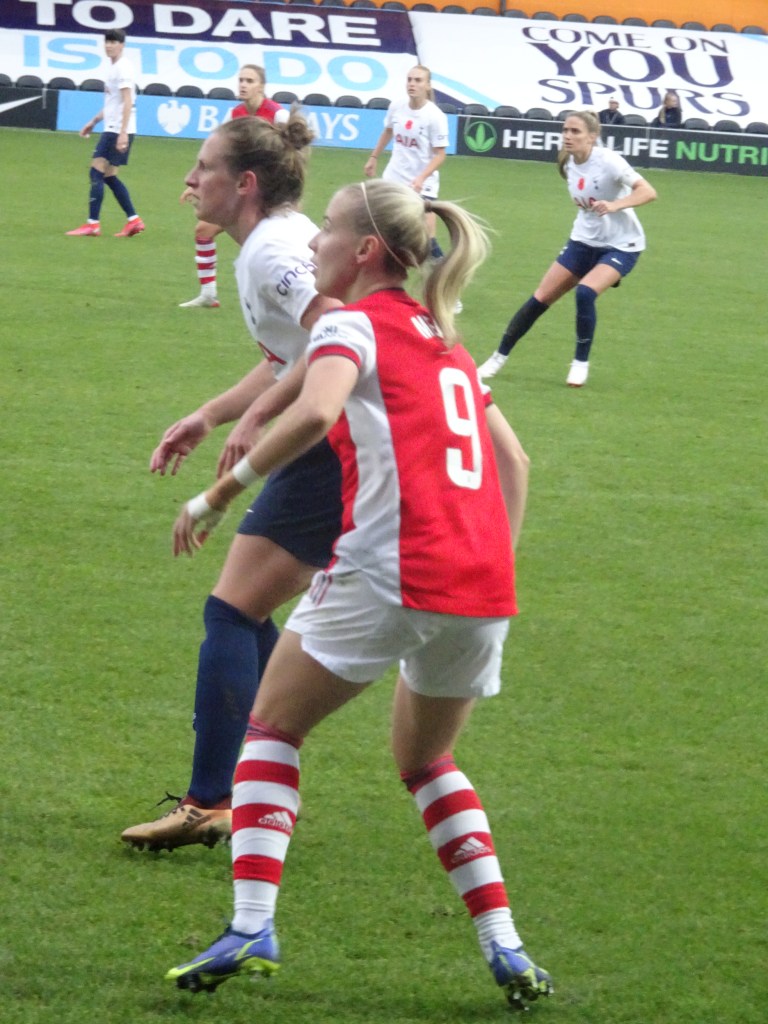 As expected Arsenal started the strongest of the two teams, Tottenham struggled to find their feet and the difference in class between the two sides was clear. Neville was struggling against McCabe who was enjoying a lot of possession and dominance down the left flank. With all the possession, Arsenal was enjoying they was unable to test Korpela in the Tottenham goal as Bartrip and Zadorksy held the defence together preventing Miedema from receiving any balls.