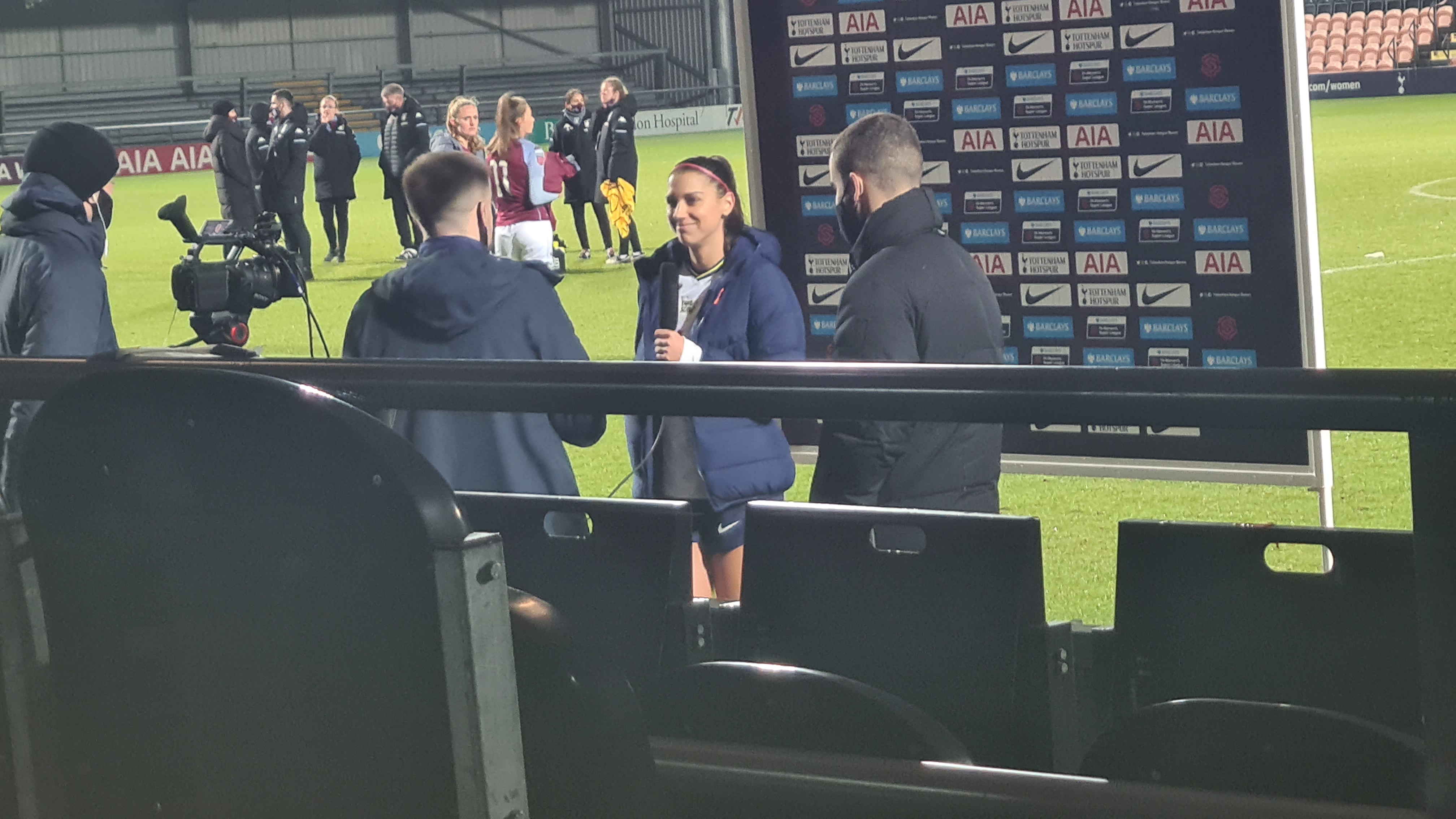 A minute later Tottenham again attacked Villa, this time Alex Morgan found herself one on one with WeiΓ and was brought down by the German as Morgan went round the keeper. Alex Morgan stepped up for the Lilywhites and sent WeiΓ the wrong way to put Tottenham 1 goal up. Despite being a goal down, Villa refused to go down and in the 20th minute Villa countered down the left wing but Hayle’s shot went wide of Spencer’s goal. The opening 20 minutes of the game was entertaining with both teams attacked one another and In the 22nd minute Ash Neville attacked the Villa right flank, crossed into the box, WeiΓ spilled the cross which fell to Ayane but her effort was deflected over for a Tottenham Corner. Even though the game was even in possession, Tottenham was the team that looked most likely to score but in the 22nd minute Tottenham was punished after a short ball in defence was latched on to by Nadine Hanssen who spotted Spencer off her line and scored with a wonderful chip to draw Villa level.